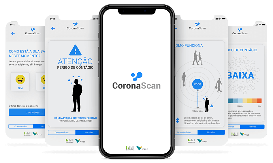 CoronaScan was a mobile application designed to detect people carrying the Covid-19 virus using the Bluetooth connection of smartphones.HOW IT WORKSAfter registering and logging in, the user would answer a questionnaire designed to determine their potential for contagion. In the case of infection, the app would detect the infected person within a 10-meter radius and issue an alert. The app’s functionality relied on the interaction between enabled Bluetooth connections and the results of the questionnaire.THE BRANDThe name CoronaScan is self-explanatory and easy to understand. The graphic element is an irregular shape referencing a microorganism as seen under a microscope. The layout, typography, and color palette work consistently with the logo, making the app easier to use while serving its ultimate goal: preventing the spread of contagion.